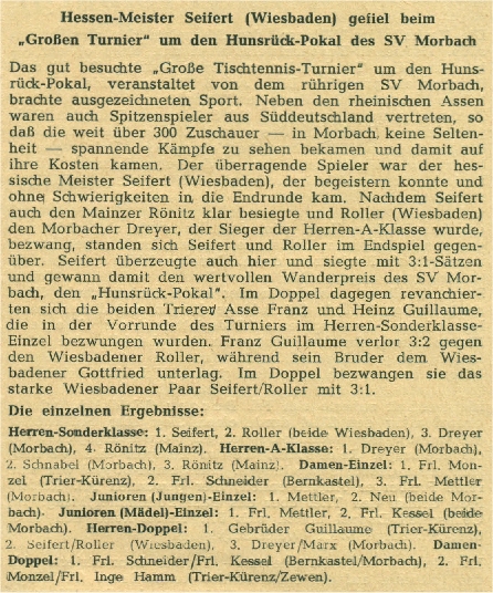 Im Frühjahr 1950 fand in Morbach das Turnier um den Hunsrückpokal statt: