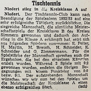 ...und ein Bericht zum Aufstieg des TTC Niedert aus der HZ vom 21.4.1953: