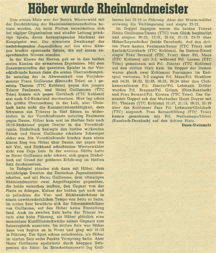 | 1. | Heinz Guillaume Josef Dauns | TTC Gelb-Rot Trier TTC Wittlich | |
