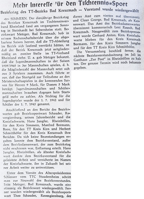 Vom Bezirkstag berichtete die Hunsrücker Zeitung am 25.Juni 1959: