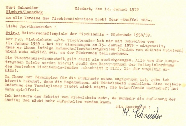 Die Mannschaft vom TTC Wiebelsheim wurde im Laufe der Saison abgemeldet: