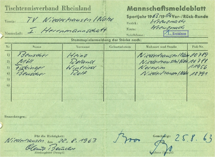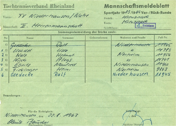 Ganz besonders ist hervorzuheben, dass die Mannschaft von der Saison 1963/64 bis zur Saison 1968/69 immer komplett antrat und keinen einzigen Ersatzmann benötigte.