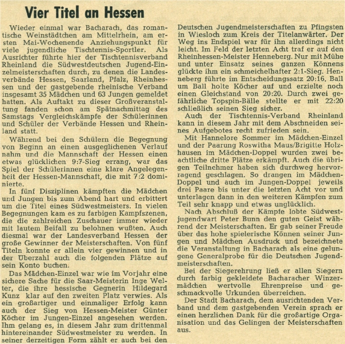 | 1. | Brunhilde Kunz Hannelore Gessinger (Wörtche) | TTC 1947 Elz SV Blau-Gelb Darmstadt | HeTTV HeTTV |