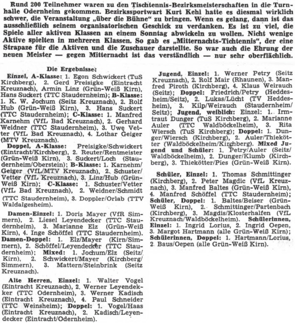 | 1. | Margot Hartmann Ingrid Lorius | TTC Grün-Weiß Kirn TTC Grün-Weiß Kirn | |