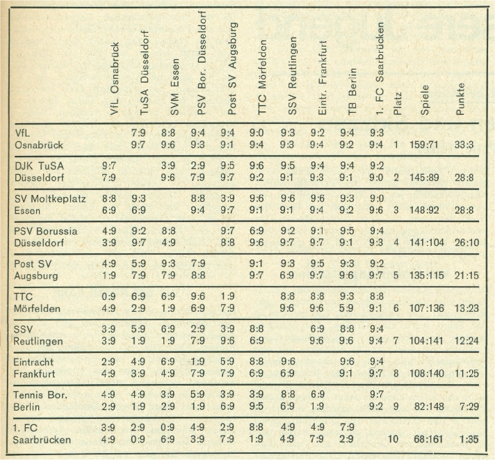 | DTC Kaiserberg | Kieler TTK | 7:2 | 15:7 |