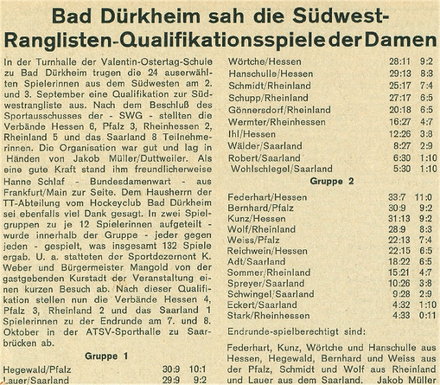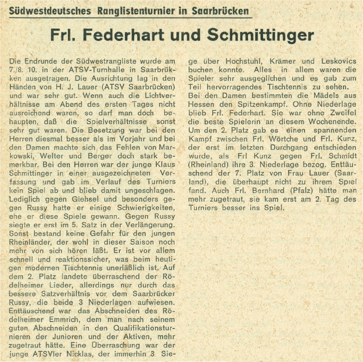 | Südwestdeutsche Rangliste 1967/68 |