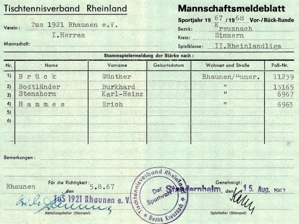 Hier das Meldeblatt der Meistermannschaft: