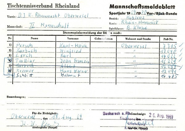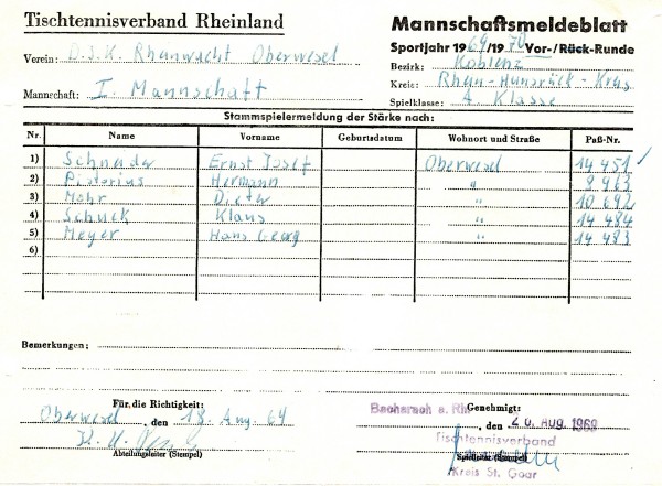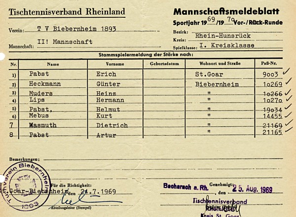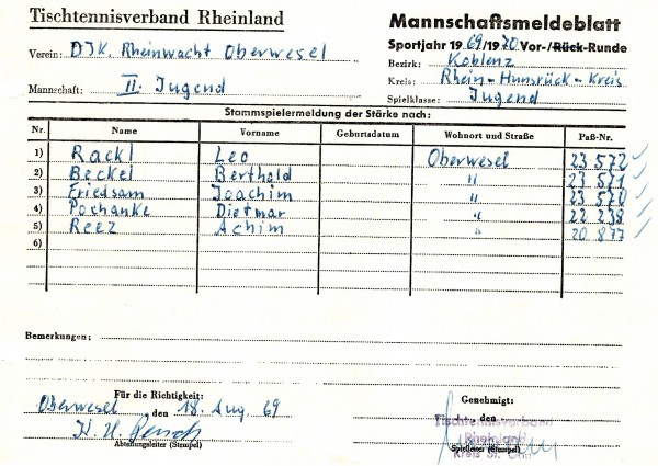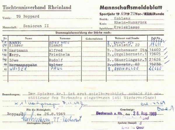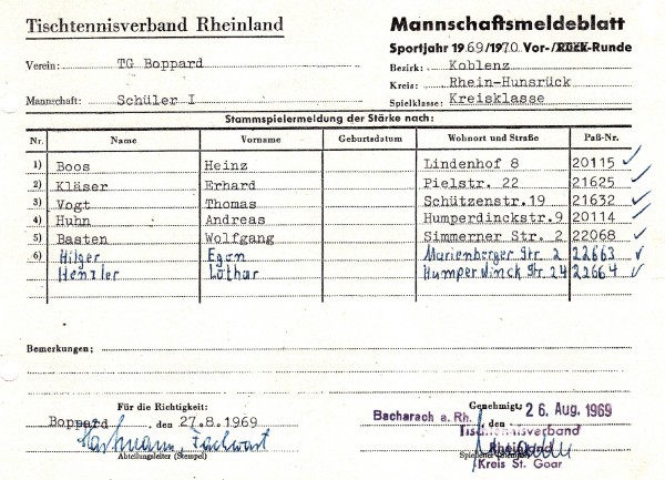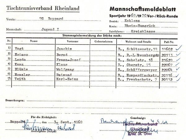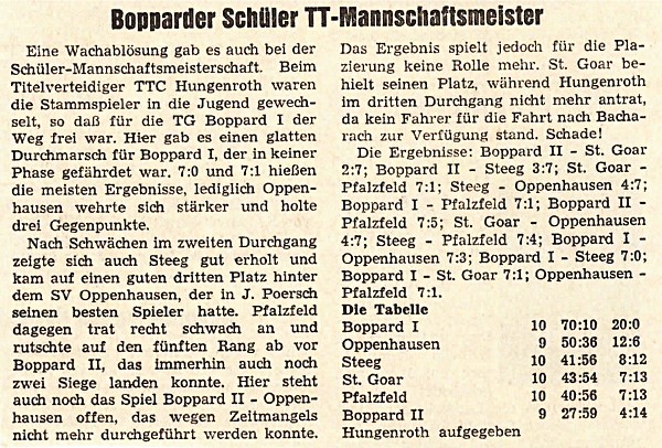 Der TTV Pfalzfeld wurde Meister der 1.Kreisklasse, der SV Oberdiebach und die TG Boppard 2 wurden jeweils Sieger der 2.Kreisklassen.