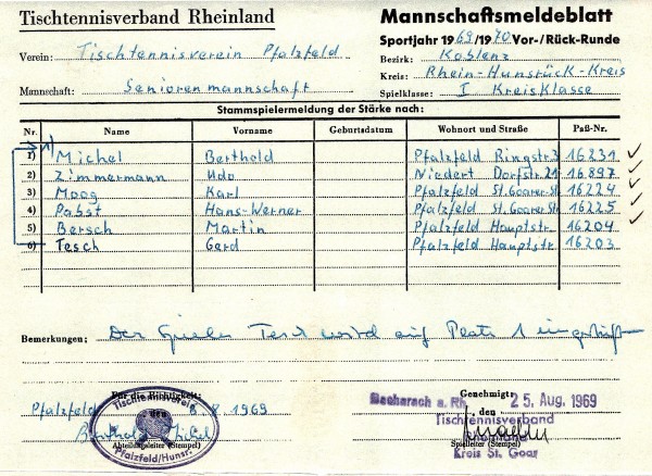 Die junge Pfalzfelder Mannschaft ging aus der 1965 gegründeten Jugend hervor, begann in der Saison 1968/69 im Herrenbereich und stieg dann gemeinsam bis zur 1.Bezirksliga auf. Dort blieben sie lange Jahre zusammen.