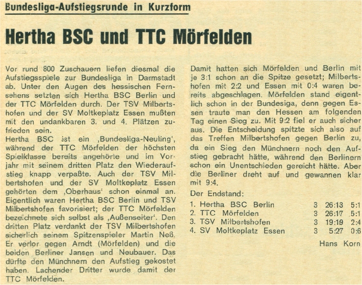 | TTC Olympia Koblenz | DJK Schwäbisch-Gmünd | 7:5 | 16:12 |