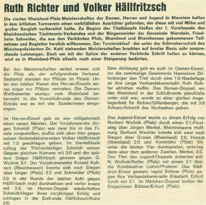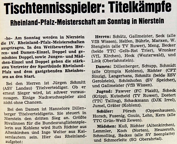 | 2. | Hannelore Dillenberger (Sommer) | TTC Olympia Koblenz | TTVR |