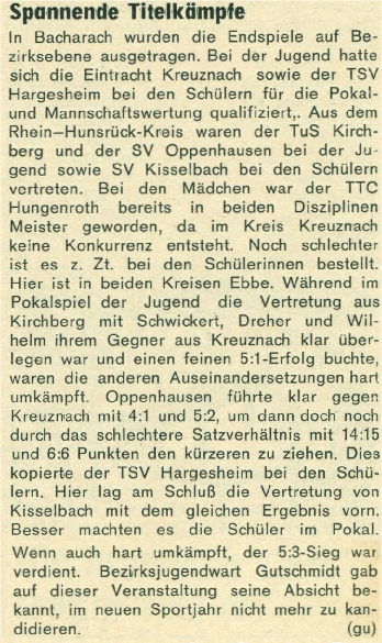 Meisterschaft Schüler: TTC Kisselbach - TSV Hargesheim 6:6 (Kisselbach Sieger wg. besserem Satzverhältnis)