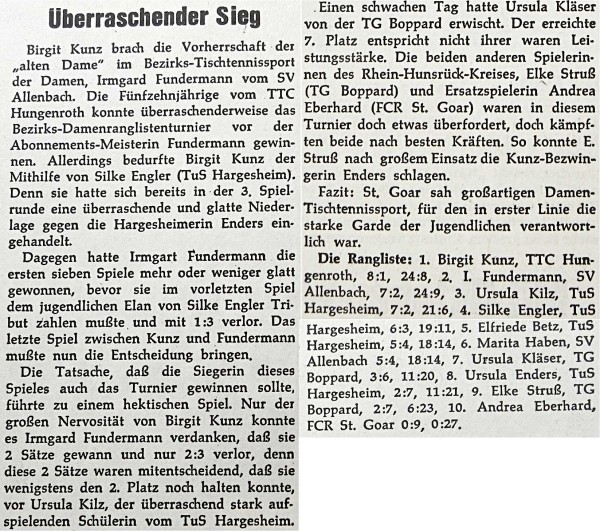 Über die Rangliste der Damen wird in der Hunsrücker Zeitung vom 3.November ausführlich berichtet:
