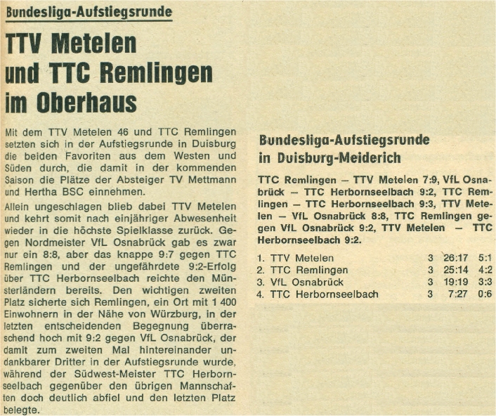 | Kieler TTK | TTC Olympia Koblenz | 6:2 | 13:4 |