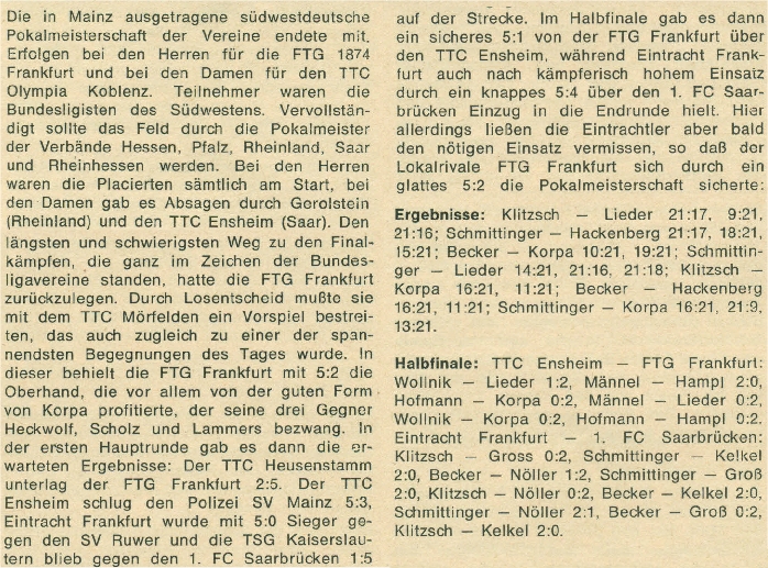 Der TTC Gelb-Rot Trier unterlag in der 1.Runde dem Gießener SV mit 3:5