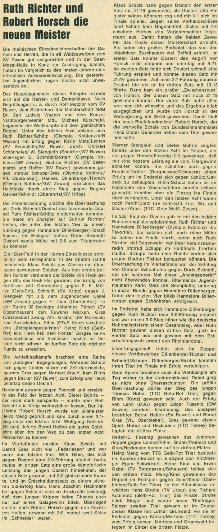 | 1. | Ruth Deutz (Richter) | TTC Olympia Koblenz | |