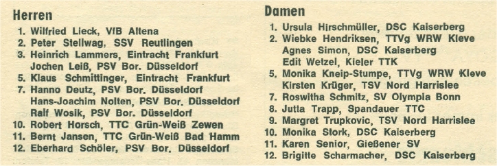 | 11. | Ralf Wosik | PSV Borussia Düsseldorf | WTTV |