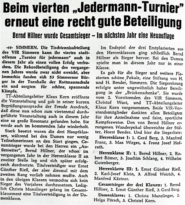 Im November 1976 wurde das Simmerner Jedermann-Turnier ausgetragen: