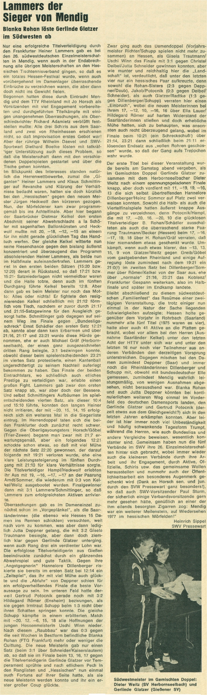 | 1. | Gerlinde Glatzer Dieter Weitz | Gießener SV TTC 1958 Herbornseelbach | HeTTV HeTTV |