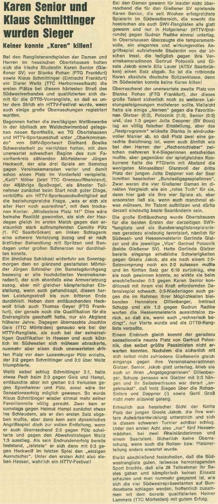 | 7. | Hannelore Dillenberger (Sommer) | TTC Olympia Koblenz | TTVR |