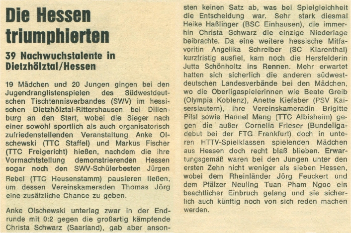 | Südwestdeutsche Rangliste 1977/78 |