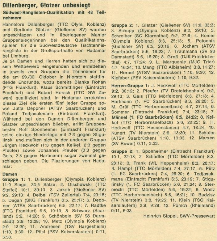 | 2. | Hannelore Dillenberger (Sommer) | TTC Olympia Koblenz | TTVR |