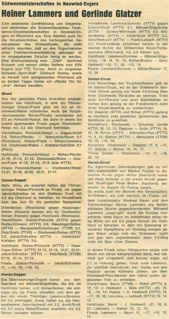 | 5. | Hannelore Dillenberger (Sommer) Lieselotte Marquenie | TuS 1904 Himmighofen MJC Trier | TTVR TTVR |