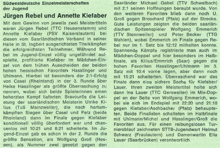 | 1. | Ina Lauer Wolfgang Emmerich | TTC Gersweiler TTV Stennweiler | STTB STTB |
