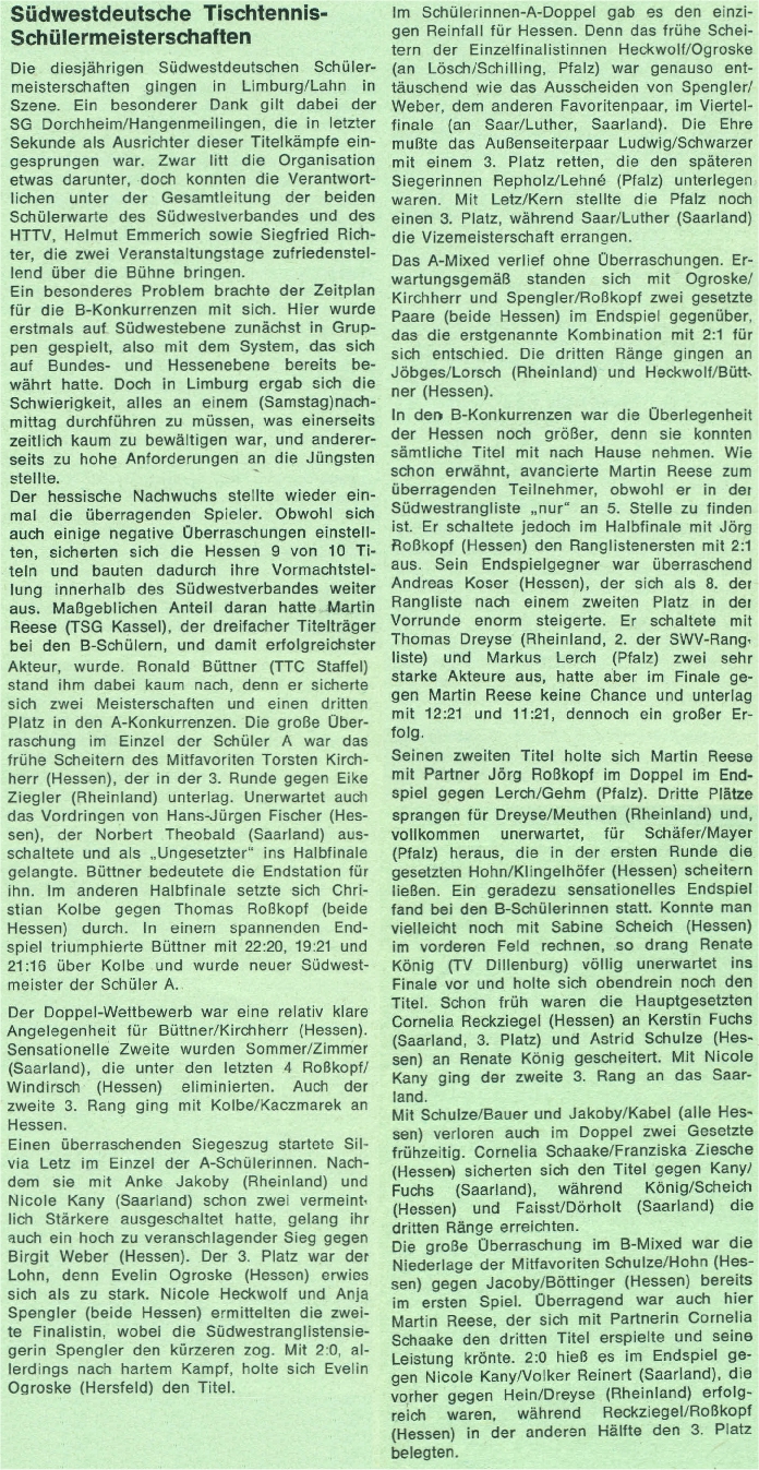 | 3. | Thomas Dreyse Dirk Meuthen | TTSG Hargesheim/Rüdesheim TTSG Hargesheim/Rüdesheim | TTVR TTVR |