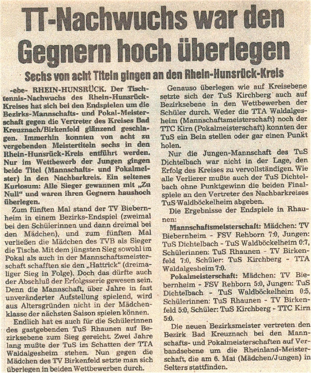Meisterschaft und Pokal Jugend und Schüler