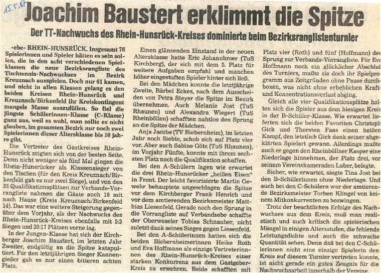 | Bezirksrangliste Bezirk Kreuznach 1987/88 |