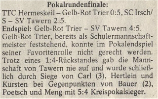 Im Pokalendspiel der Herren standen sich der SV Trier-Olewig und der TTC Grün-Weiß Zewen gegenüber: