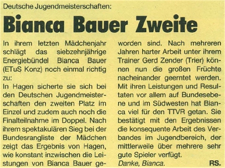 | 9. | Bianca Bauer | ETuS Konz | TTVR |