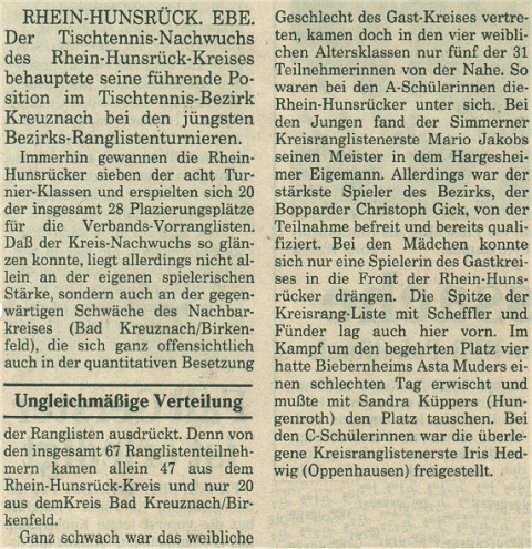 | Bezirksrangliste Bezirk Kreuznach 1992/93 |