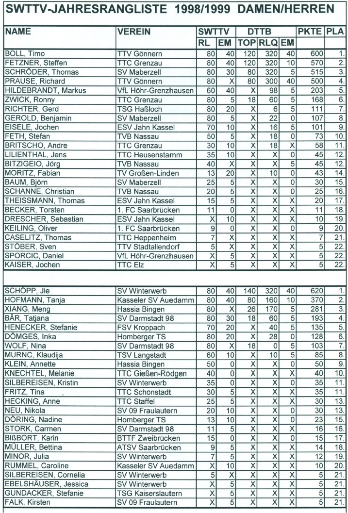 | Südwestdeutsche Rangliste 1998/99 |