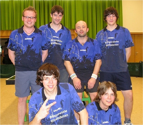 Platz 3 in der 1.Kreisklasse Staffel 1 belegt der TuS Rheinböllen 2 mit Martin Becker, Heiko Blatt, Christian Bast, Rochus Becker, Gerd-Peter Michelet und Reinhold Krämer (vorne)