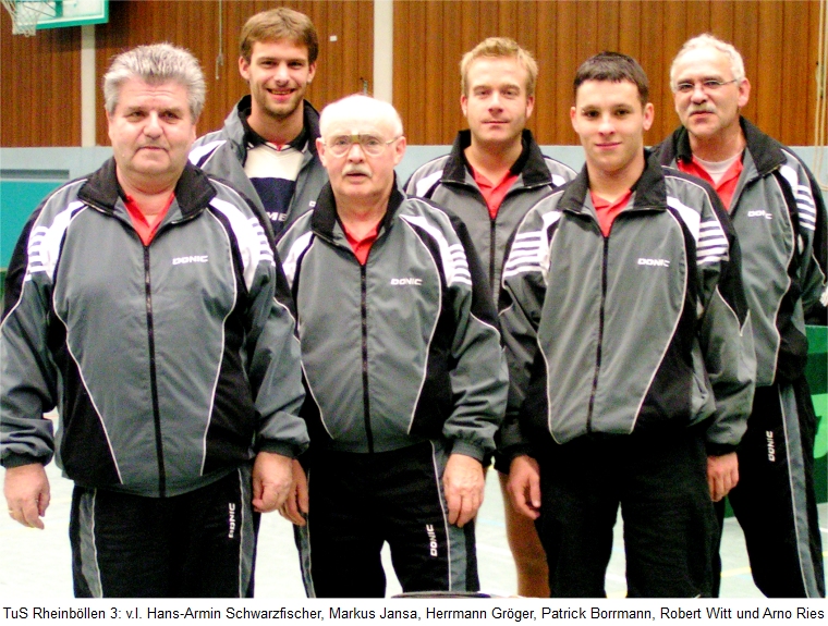 Platz 10 in der 3.Kreisklasse Staffel 1 belegt der TuS Rheinböllen 4 mit Peter Hegel, Gerd-Peter Hees, Philipp Hower, Wolfgang Wilschinski und Horst Theobald