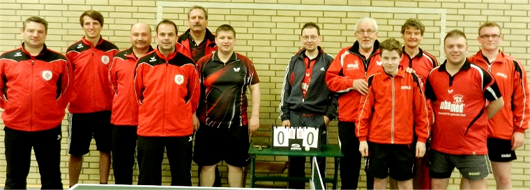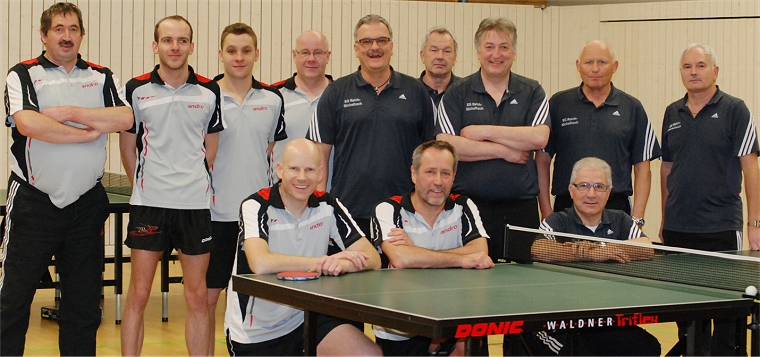 Auf dem Bild stehend v.l.: Thomas Pörsch, Tim Schneberger, Manfred Gruhn, Peter Oberst, Bernd Schneberger, Michael Bedersdorfer, Rainer Klein, Peter Bernardy, Alexander Löser, Wolfgang Basten, Marc Bröder und Maximilian Ziegler