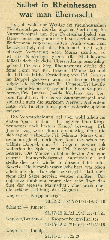 | Herber (Köhler), Grete | Hollendiek (Thöle), Annegret | 15, 12 | 2:0 |