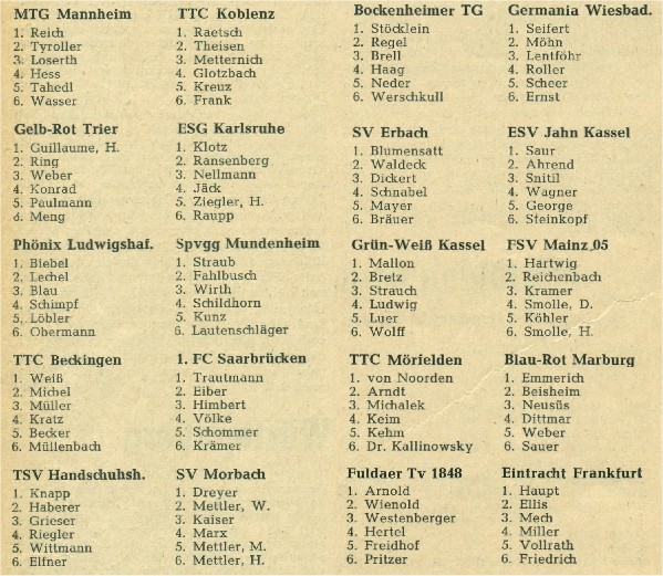 Hier die Mannschaftsaufstellungen aller Oberliga-Teams aus dem Südwesten: