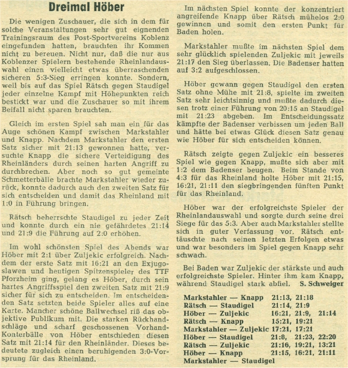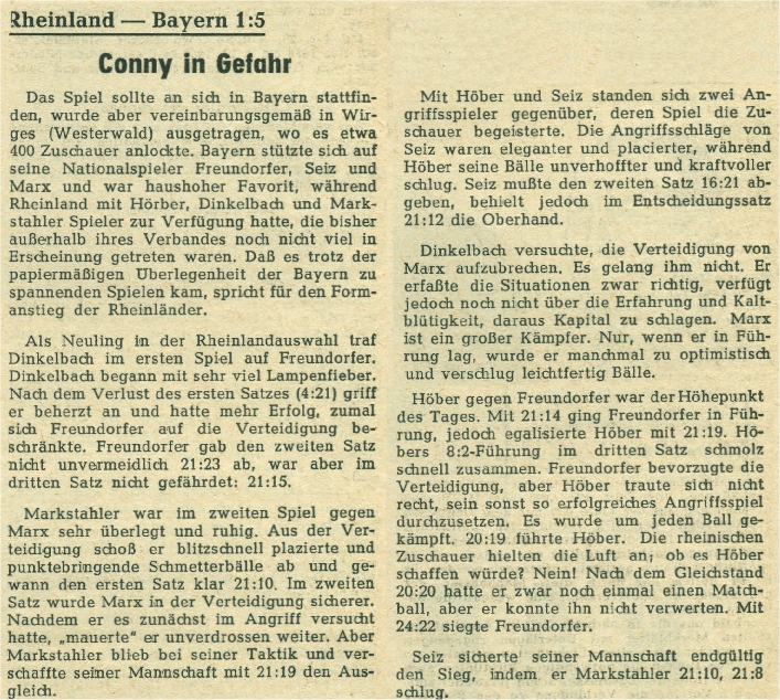 Im ersten Spiel schlug die Mannschaft aus dem Rheinland die Badener Auswahl mit 5:3, im Viertelfinale unterlag man dann dem späteren Sieger Bayern mit 1:5: