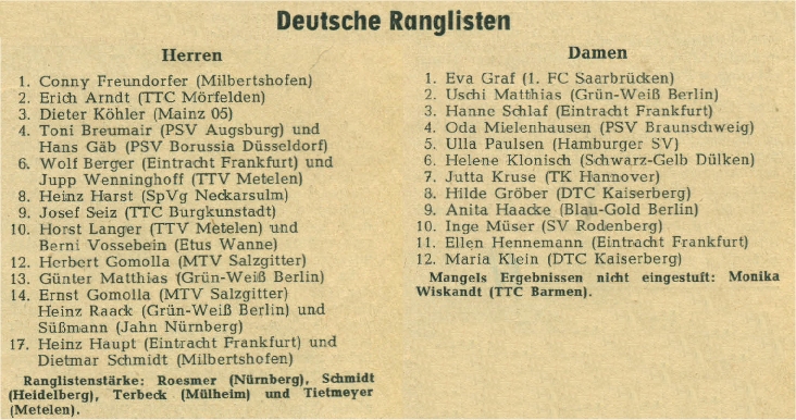| 3. | Ursel Matthias (Fiedler) | BTTC Grün-Weiß Berlin | BTTV |