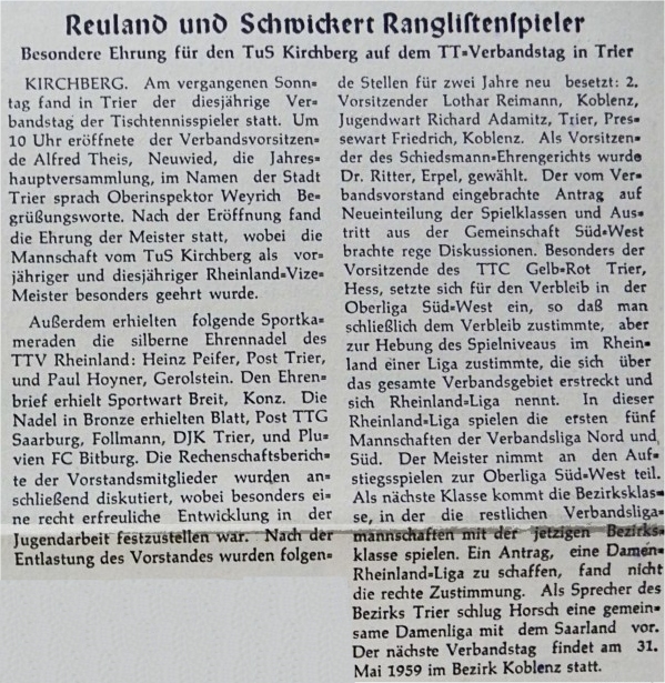 Am 7.Mai 1958 wird in der Hunsrücker Zeitung vom Verbandstag berichtet: