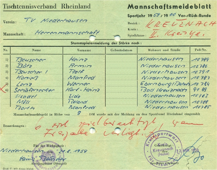Hier der historische Meldebogen des TV Niederhausen: