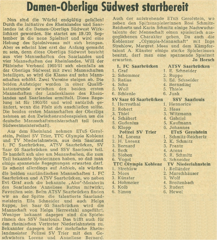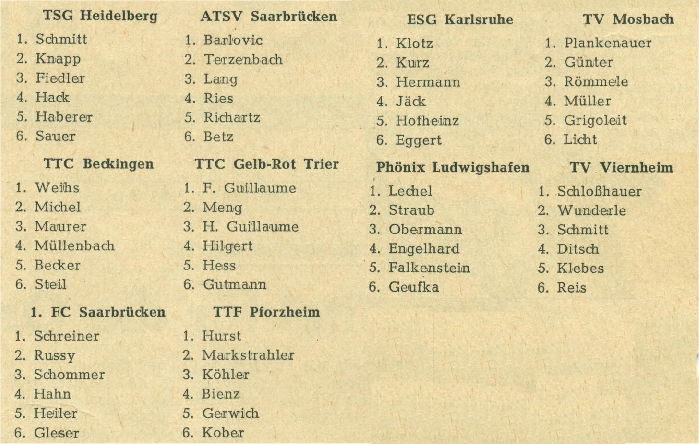 Hier die Mannschaftsaufstellungen der Oberliga-Teams aus Gruppe 1: