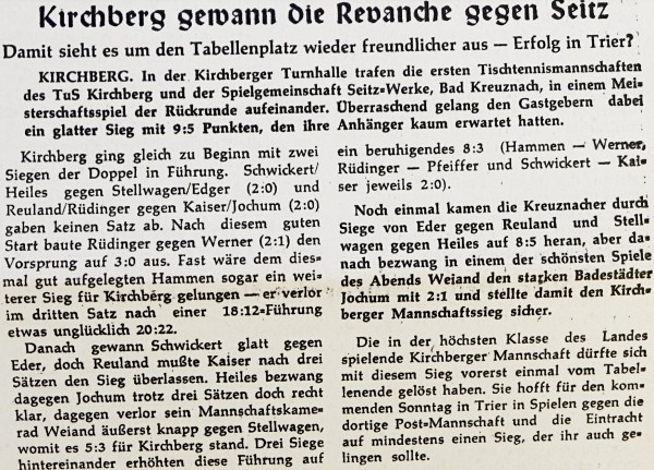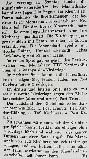 Am 28.Mai 1960 wurde in der Hunsrücker Zeitung berichtet: