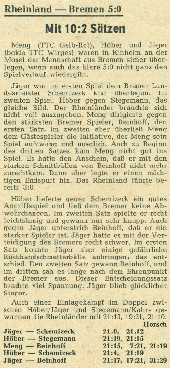 Die Mannschaft aus dem Rheinland besiegte in der 1.Runde Bremen mit 5:0 und unterlag dann dem späteren Sieger aus Westdeutschland: