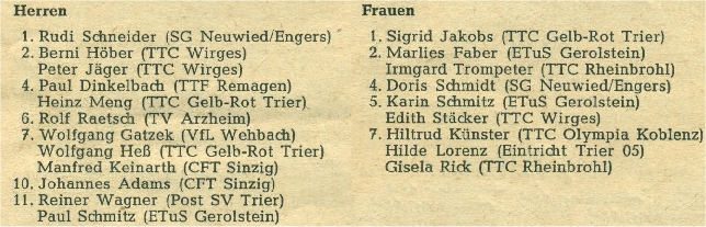 | 8. | Hiltrud Künster | TTC Olympia Koblenz |