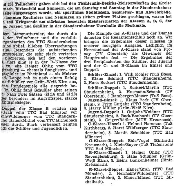 | 1. | Hans Suckert Martin | TTC Staudernheim TTC Staudernheim | |