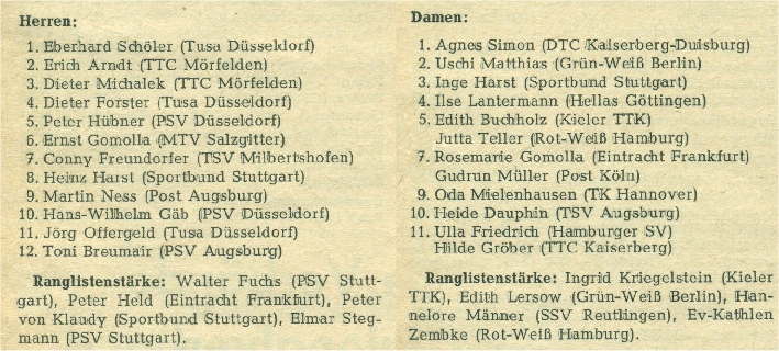 | 4. | Ursel Matthias (Fiedler) | BTTC Grün-Weiß Berlin | BTTV |